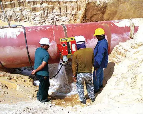 و از موارد کارهایی که نیاز به بریدن لوله ای که در آن مواد قابل اشتعال نظیر گاز و نفت بوده استفاده میشود.